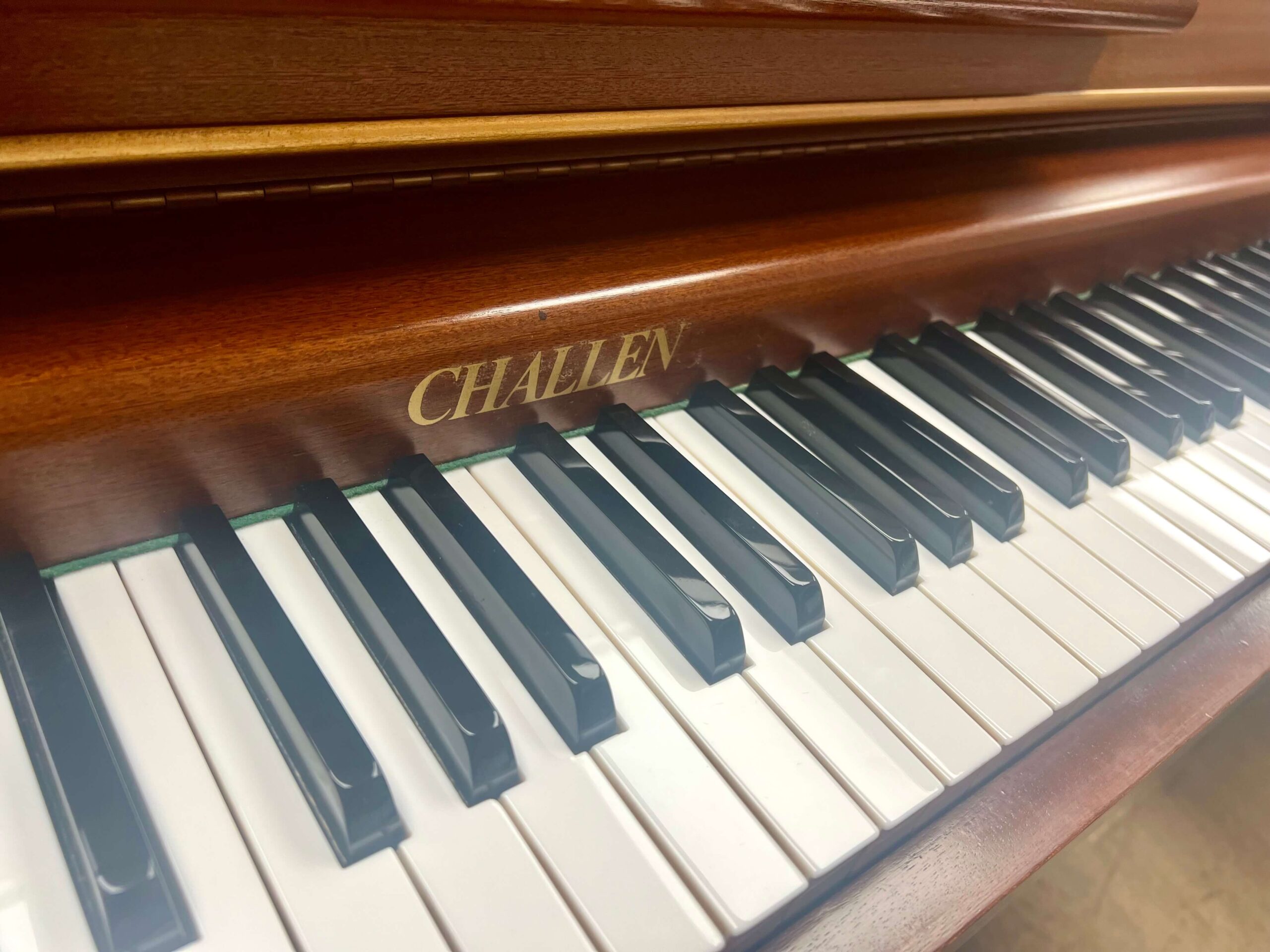 Here we have Challen 988 upright piano in a mahogany case with brass hardware.