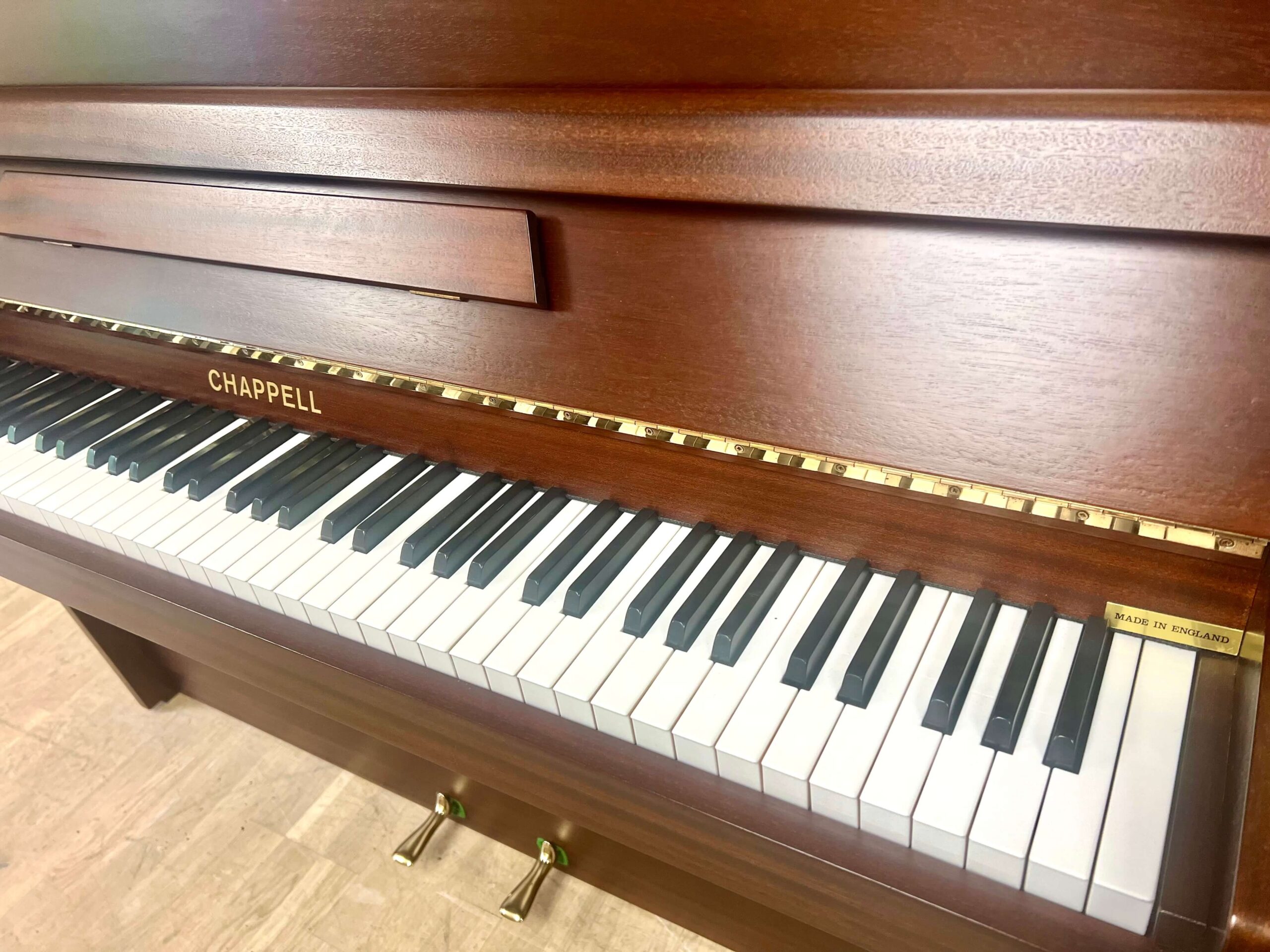This is the next model up from the Chappell 110, the main difference being the larger soundboard size and longer string length, which gives the piano more dynamics and power to play with.