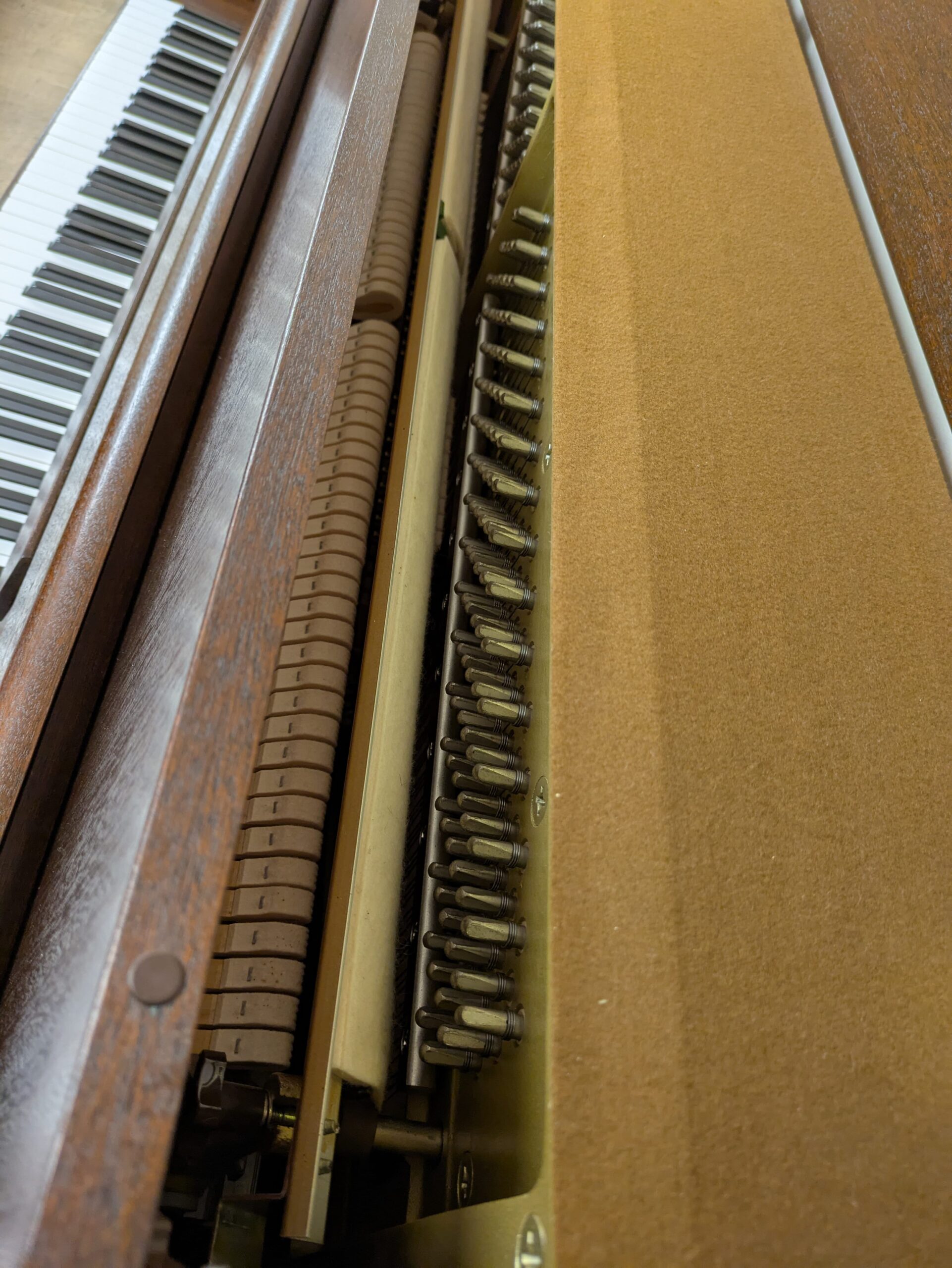 As with many Kemble pianos from this era, this piano has a very balanced tone that is clear and clean sounding, very adaptable and versatile and not too heavily coloured.
